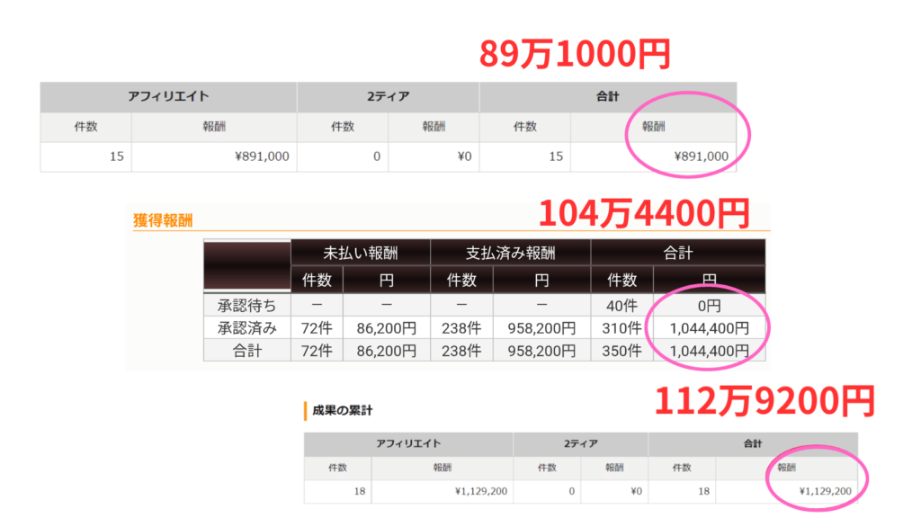 ・クレカ作成などで報酬が得られる自己アフィリエイト案件でお小遣い稼ぎするも、すぐに稼げる案件が尽きる。